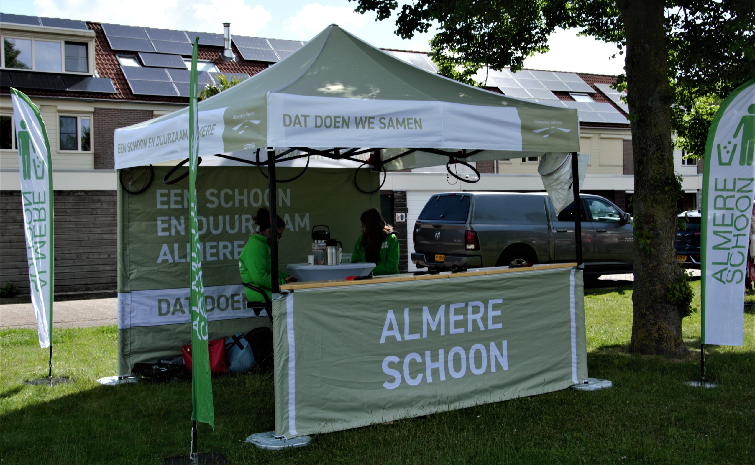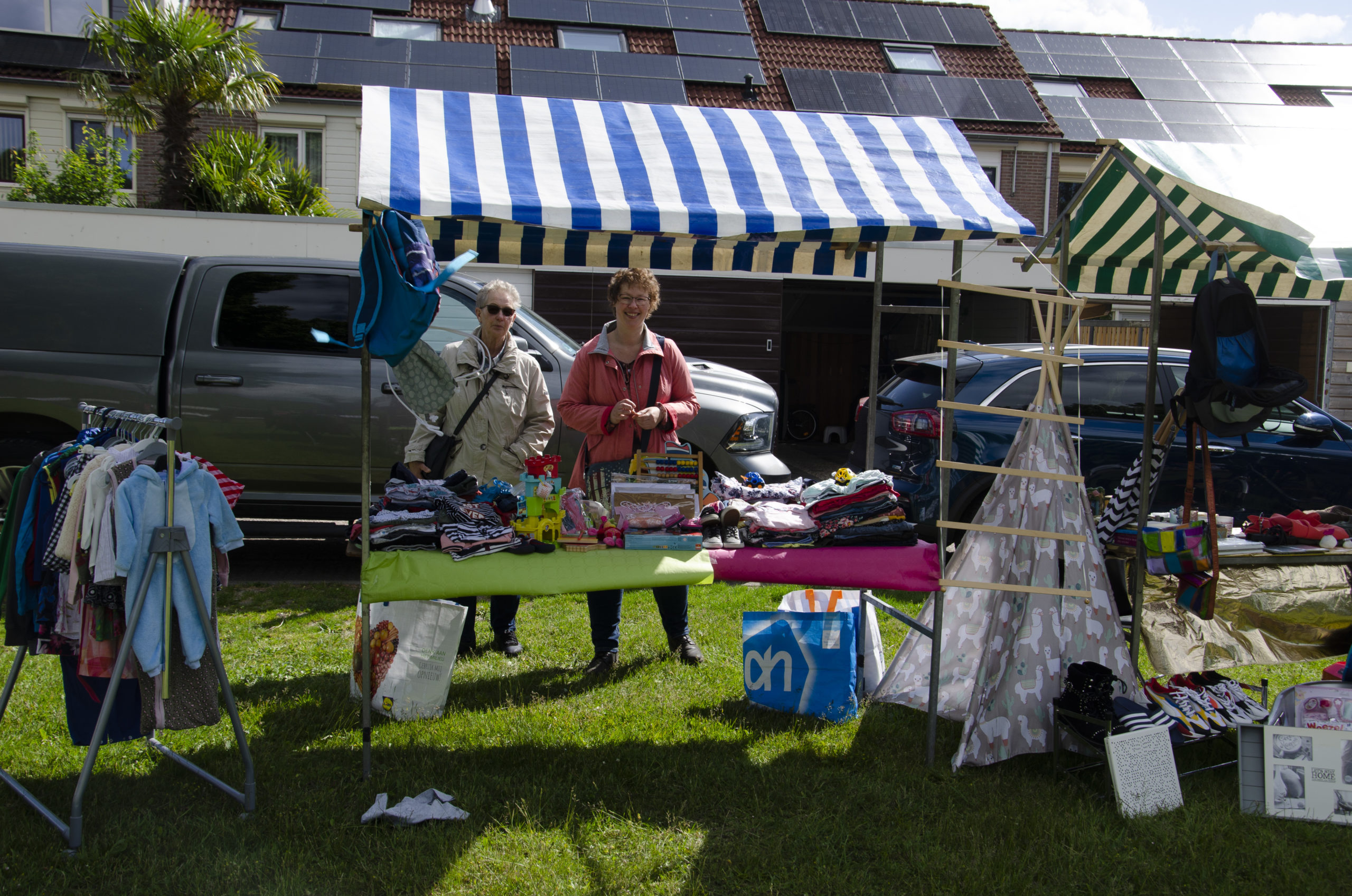 Van vrijwilligers heeft Anita veel hulp gehad bij het rondbrengen van de mooie flyer, en op de ochtend van de braderie met het opzetten van de kramen.