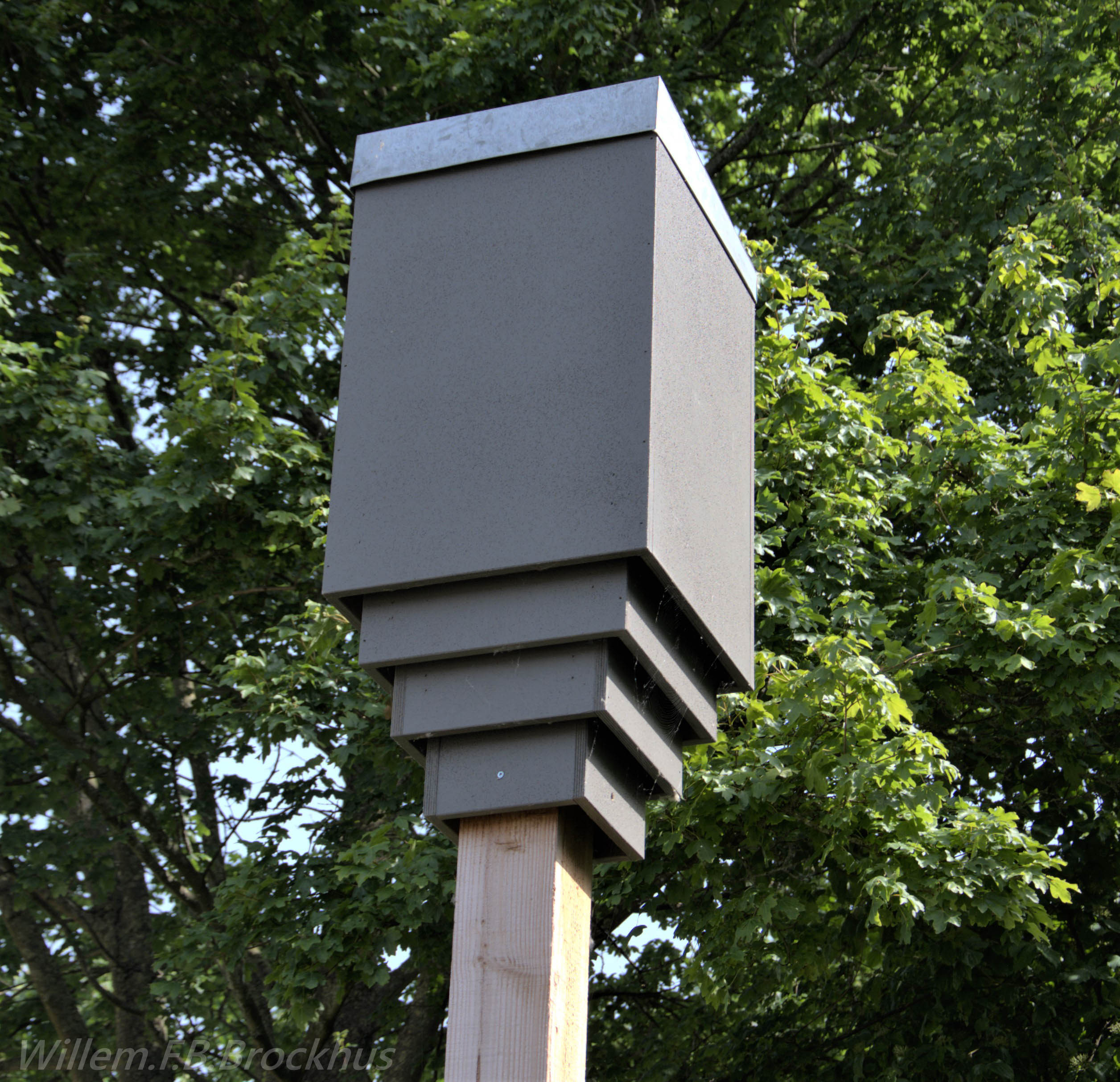 Misschien heb je je wel eens afgevraagd wat die rare kastjes op palen op de Oreganoweg zijn. Het zijn houten vleermuiskastjes! Aan alle vier de zijdes van de kast zitten drie kamers. Zo kunnen de vleermuizen in de kast naar een andere kamer verhuizen, als hij zijn plekje te vochtig, te droog, te warm of te koud vindt.