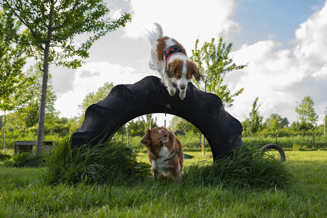 Dollen op het hondenspeelveld