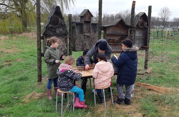 Op vrijdag gaan de kinderen van groep 3 en 4 naar het Kruiderzeebosje, (Tiny Forest). Ze hebben een ‘eigen’ boom in het bosje aan het laagstgelegen stuk van het Koggepark, langs het fietspad naar de Noorderplassen. Daar zoeken ze insecten om te en te determineren, daar meten ze de groei van de bomen en daar doen nog een heleboel andere natuur-activiteiten.