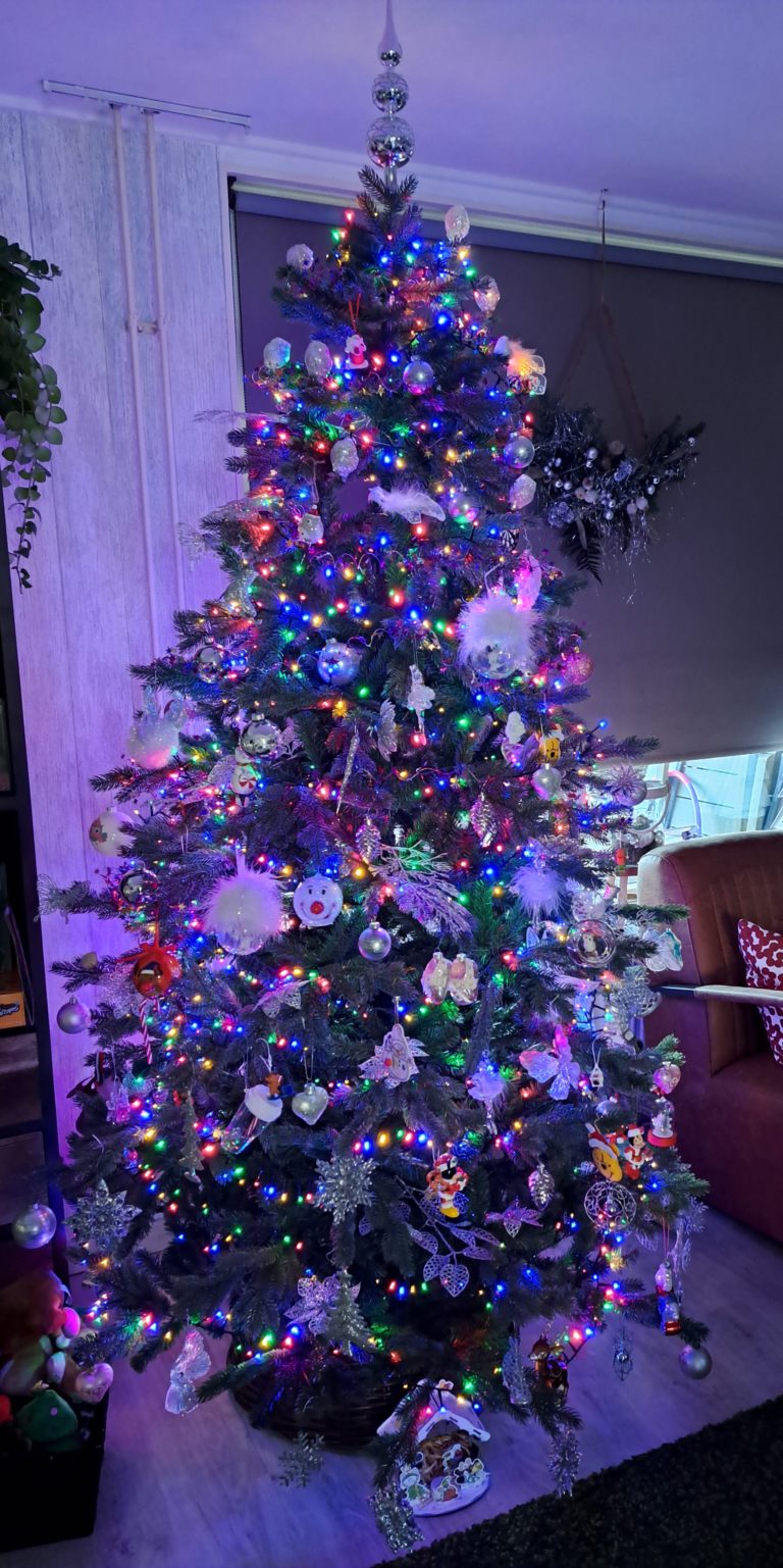 Samen met mijn 5 jarige dochter hebben wij de kerstboom versierd. Er zit van alles in. Zilveren en roze ballen, disney figuren, ballerina’s, bloemen en slingers. Maar voordat dat erin ging deden we eerst de gekleurde lampjes! Mijn dochter trots op de boom, dan wij ook! Onze 2 jarige zoon vond het ook wel interessant en heeft ook geprobeerd om te helpen.