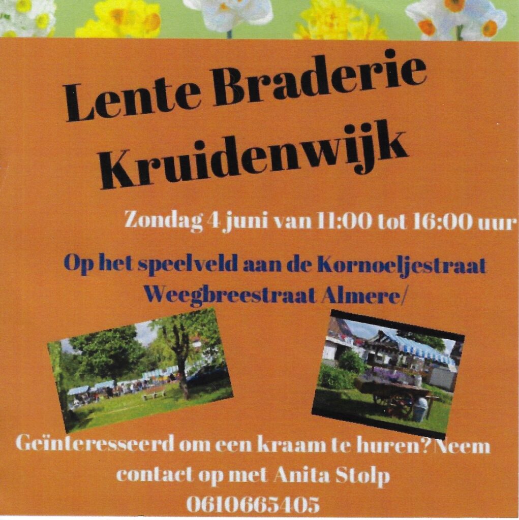 Zondag 4 Juni is er weer een gezellige braderie in Kruidenwijk.