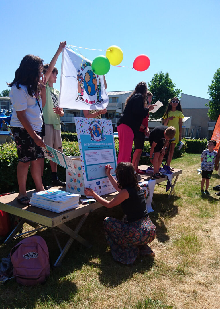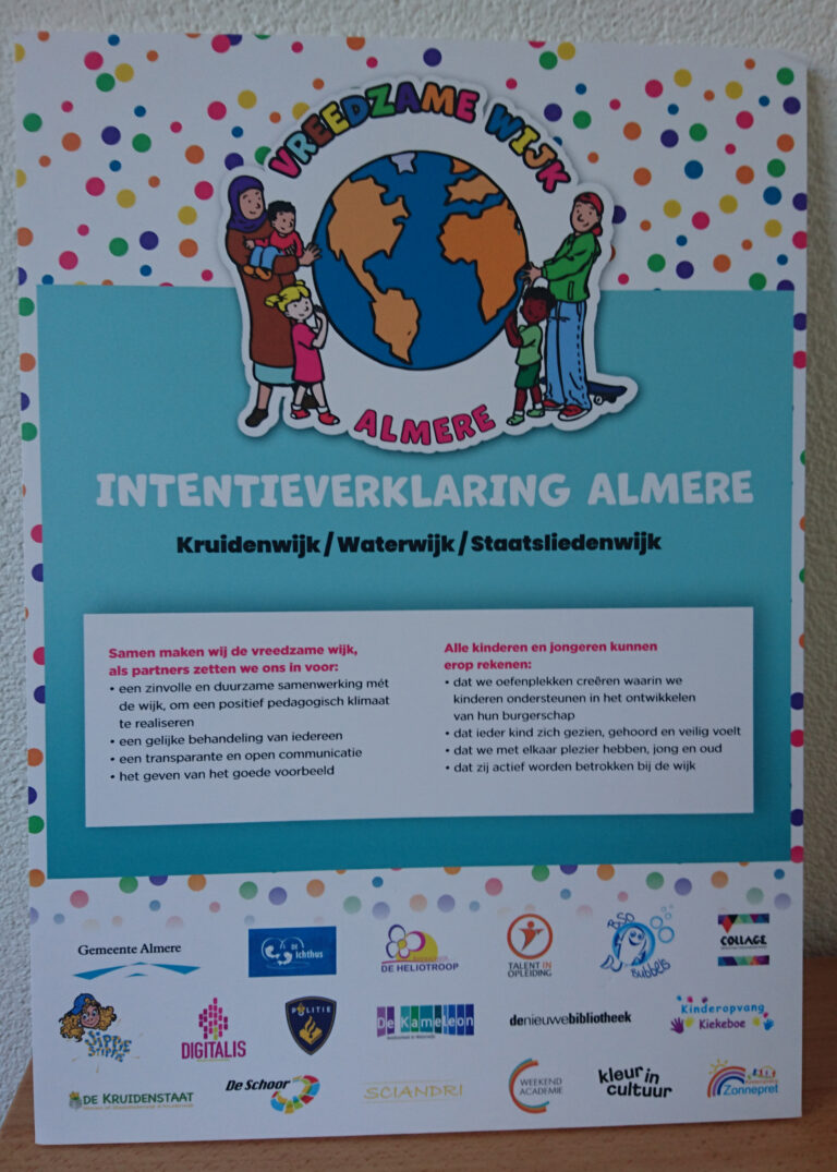 Op de Straatspeeldag hebben de organisaties die meewerken aan de Vreedzamewijk een intentieverklaring ondertekend. Daarin verklaren ze dat ze met elkaar gaan samenwerken om de wijk ‘vreedzaam’ of vredelievend voor kinderen te maken. Wel 18 organisaties hebben de intentieverklaring getekend: scholen, kinderopvang-organisaties, buurthuizen en verenigingen. En ook de Kruidenstaat gaat de komende tijd aandacht besteden aan wat er vanuit de Vreedzamewijk gebeurt.