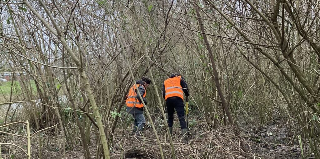 Kortgeleden stond er echter op een doordeweekse ochtend op de groepsApp van BBB een oproep van Rick om mee te helpen bosranken aan te pakken. Deze klimmers, ook wel Clematis genoemd, groeien om en door verschillende bomen heen en hebben supersterke ‘ranken’. De bomen worden hierdoor belemmerd in hun groei en kunnen zelfs afsterven. Ik wilde wel eens zien hoe dat er aan toeging.