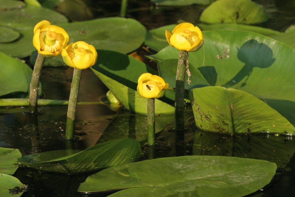 Door het baggeren komen de wortels van de gele plomp los. Deze blijven drijven op het water en verteren heel langzaam. Omdat in het voorjaar de bootjes hier last van kunnen hebben bij het varen, worden deze wortels door een aannemer in opdracht van het Waterschap verwijderd. Bovendien gaan kinderen misschien proberen de wortels uit de sloten te vissen. Dat is gevaarlijk natuurlijk. Ze kunnen er gemakkelijk in vallen. De medewerker die ik sprak, viste de wortels van de plant met een grote hark uit het water. Zo kunnen de stronken op een veilige manier verwijderd worden. Dat is beter voor de mens en de natuur.