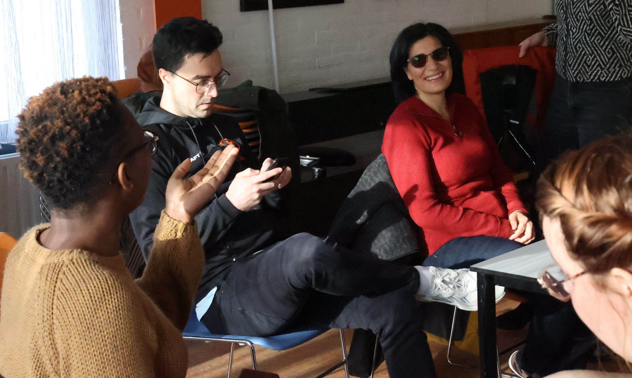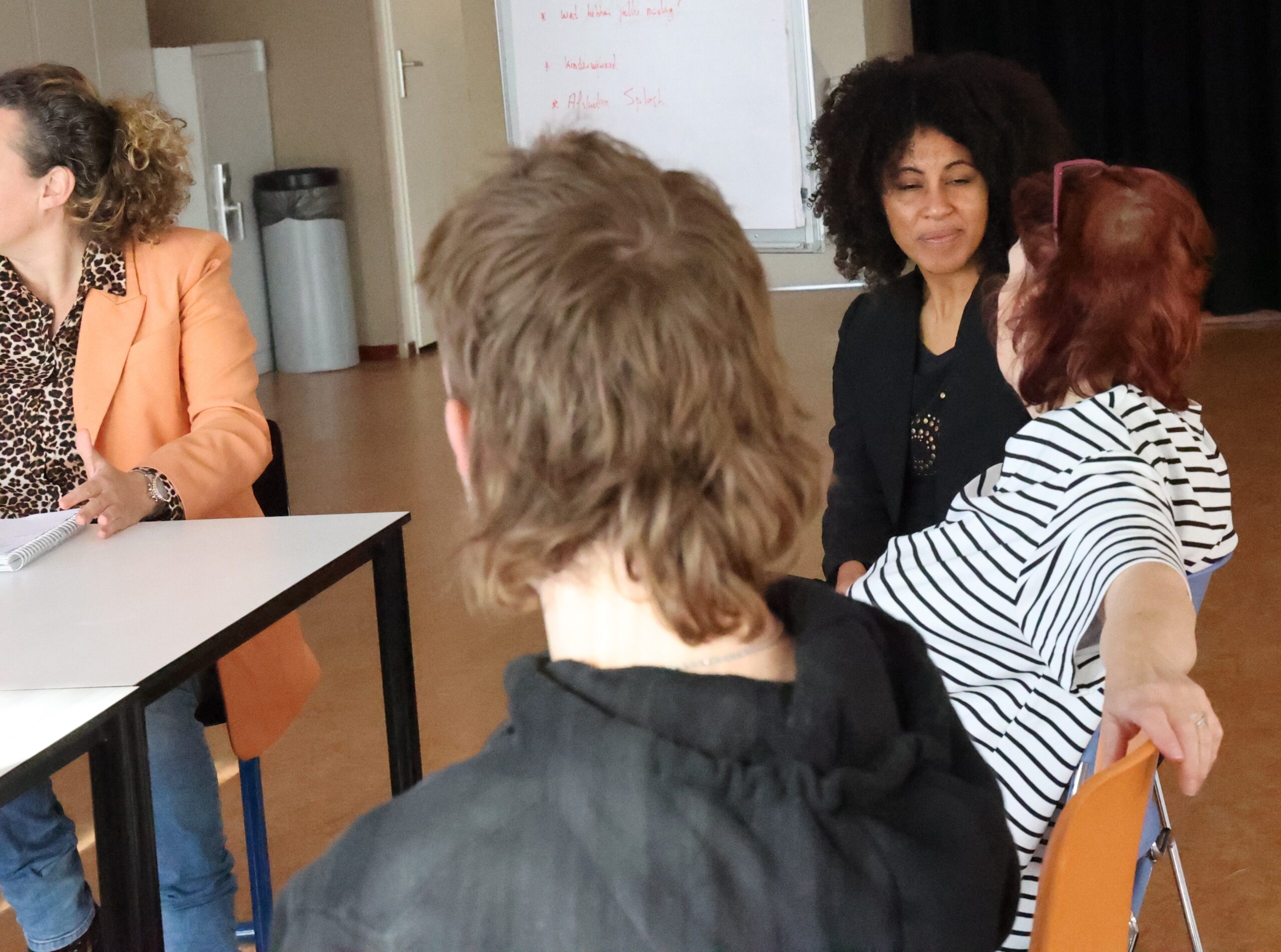 De medewerkers die in buurthuis de Draaikolk bij elkaar zijn gekomen, hebben al een training gehad vanuit de Vreedzame Wijk. In de training ging het over de manier waarop je kinderen een stem kunt geven en hen beter kunt betrekken bij activiteiten in de buurt. Nu stond op het programma wat zij willen gaan doen en hoe ze onderling met elkaar gaan samenwerken.