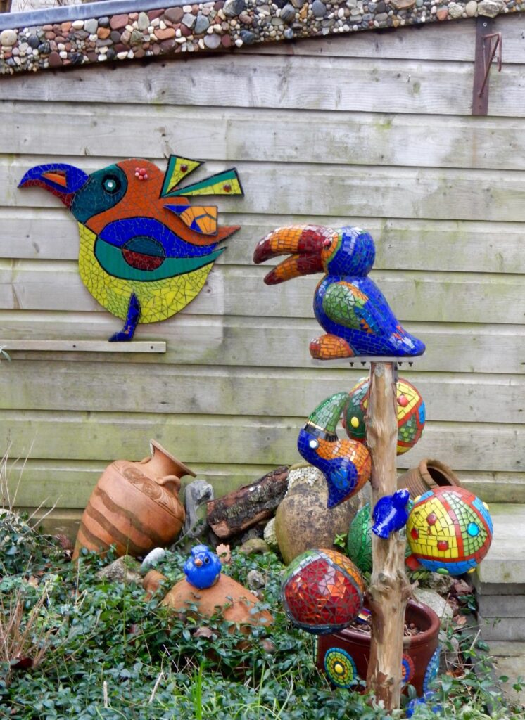 Ik had afgesproken met Ina voor een interview. Ina haar huis kun je niet missen. De tuin staat vol met prachtige mozaïek kunstwerken. Vandaar deze originele combinatie in de naam van haar huis.