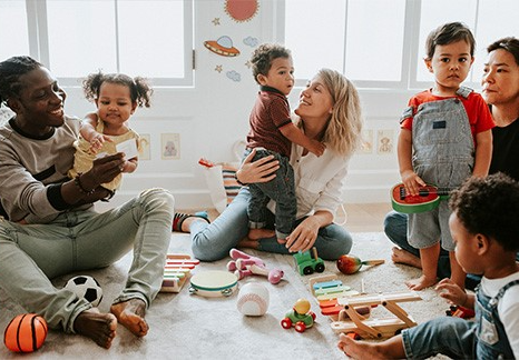 Het is druk en gezellig in de grote ruimte bij buurthuis Kardoes. Verspreid door de ruimte zijn groepjes ouders en kinderen met elkaar aan het spelen of praten. Een kindje speelt met een grote houten vrachtwagen, twee anderen lopen rondjes om de tafel, terwijl ze hard lachen van plezier. Er zijn ouders die met hun kind spelen, anderen praten met elkaar.
