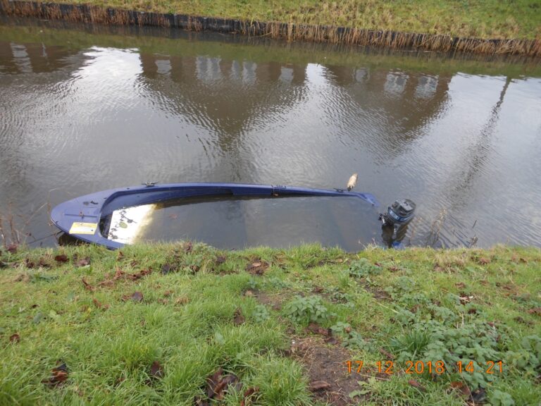 1. Boot is gezonken (helemaal onder water of tot de bodem van de watergang)
