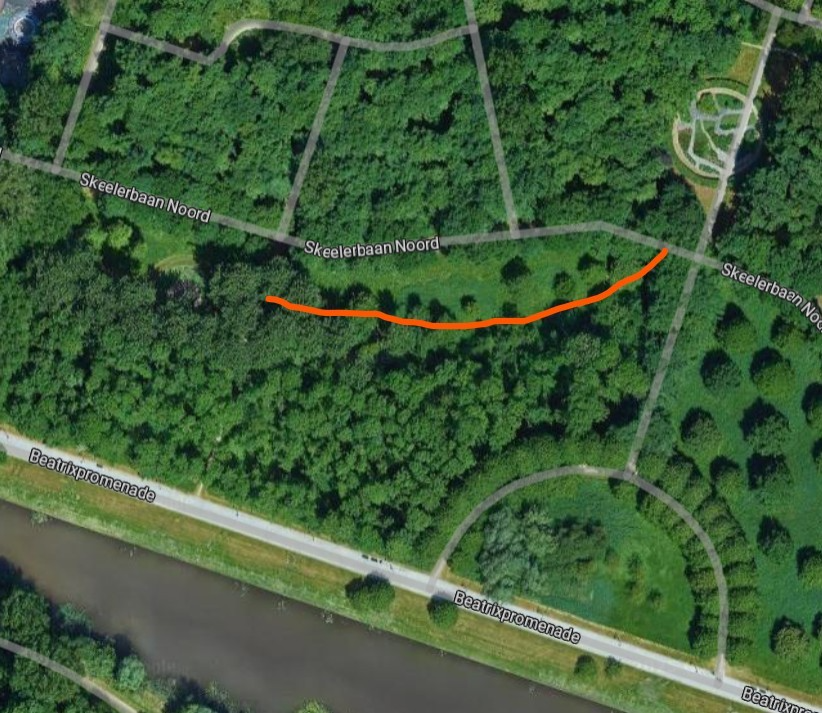 U vindt het Bomenpad parallel aan Skeelerbaan Noord, grofweg tussen de twee cirkeltuinen. Je loopt erop van de Hof van Eden naar de Munttuin of andersom, en ziet dan aan weerszijden van het paadje de beborde bomen.