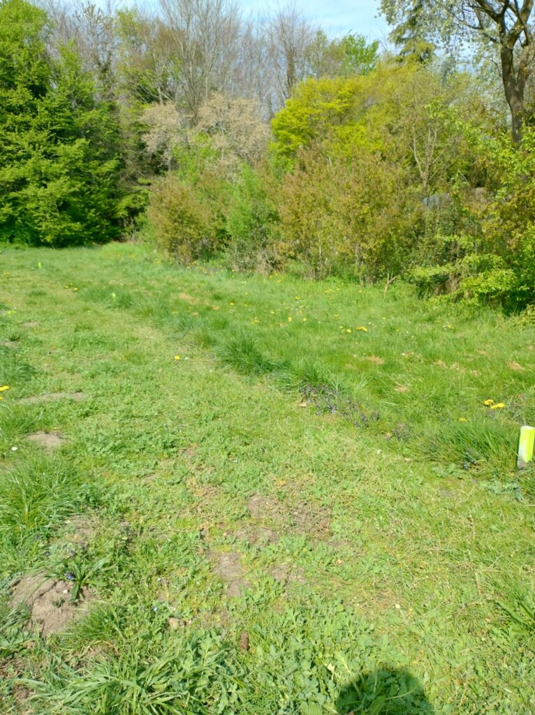 Jammer genoeg kan ik niet zeggen dat de plantjes nu al uit de grond schieten. Zoals u op de foto kunt zien, is er nog niets anders te zien dan gras en wat onkruid. De droogte is niet erg bevorderlijk voor het uitkomen van nieuwe zaadjes. Hopelijk kan een regenperiode (maar wanneer??) daar nog verandering in brengen. Tot dat gebeurt, moeten we de plantjes in onze eigen tuinen maar een beetje vertroetelen, om deze droogte goed door te komen. Gelukkig zijn plantjes met wat regen al gauw tevreden om weer hun best voor ons ( en de bijen natuurlijk!!) te gaan doen.