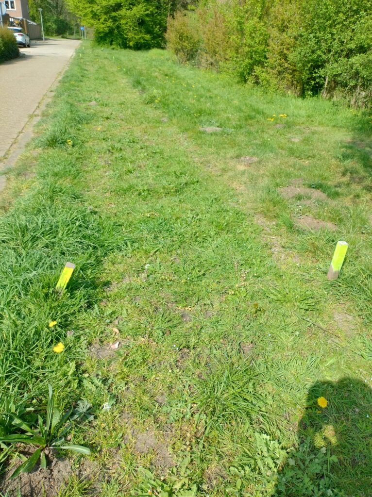 Het gaat hier om de strook langs het fietspad dat loopt van de Kweekgrasstraat naar het Sint Janskruidplantsoen. Daarover is in oktober 2023 door de gemeente besloten een strook met bloeiende bloemen aan te leggen, een zogenaamd bijenlint.