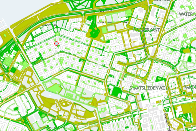 3.Bloemrijk grasland: gras tot ongeveer heuphoogte, onder meer langs dreven, water en in parken. Maar ook in grote velden in de wijken, langs de randen van de stad en het spoor. In dit gras vinden dieren zoals insecten, vogels, salamanders en konijnen eten en een slaapplek. Dit ‘ecologisch beheerde gras’ is goed voor de natuur in de stad. We maaien dit één tot drie keer per jaar en laten bij elke maaibeurt altijd een derde staan. Hierdoor hebben dieren altijd eten en een schuilplek, ook in de winter. We maaien één keer per jaar op plekken waar bijna niemand komt. Dan kan het gras groeien tot boven de heup. Dat geeft veel leefruimte voor dieren en planten. Bloemrijk grasland komt vooral voor aan de randen van de beide wijken.