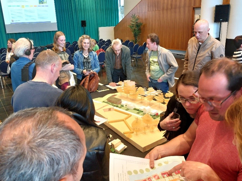 Aan het einde kon iedereen zich rond de maquettes verzamelen om na te praten en vragen te stellen aan de initiatiefnemers. Daar werd druk gebruik van gemaakt. Al met al was het zeer informatief. Een mooi voorbeeld hoe er ook in onze wijk innovatief gebouwd kan worden. Anderzijds laat de belangstelling zien dat er nog veel woonruimte nodig is. En het papierwerk, de regels en vergunningen maken dat niet eenvoudiger. Dat speelt uiteraard in heel Nederland. De toekomstige bewoners hebben dat voorlopig achter zich gelaten. Of zoals een meneer het mooi verwoordde: “Ik woon al 40 jaar in Kruidenwijk maar ik wil graag gelijkvloers wonen met de mogelijkheid voor mantelzorg later. Dat ga ik nu bouwen en ik hoef hier niet meer weg!”.