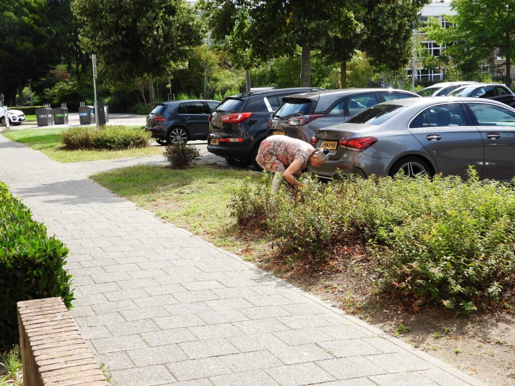 Sonja vertelt: We verzamelen meestal bij de Driehoek. De spullen die nodig zijn om te prikken: prikstokken, vuilnisbakzakken liggen opgeslagen in het Kardoes. Het zou handig zijn, als we ook handschoenen erbij zouden krijgen. We lopen meestal de Churchillweg op. We prikken daar waar nodig is, langs de stoepen, in de bosjes, in de zijstraten, bij de vuilnisbakken etc.