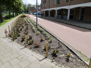 Eindelijk is het bloemen- en plantenperk in Staatsliedenwijk West er gekomen. Als je over het fietspad langs de rand van het water over de Regentesseweg fietst, kan je het bewonderen.